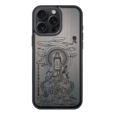 Guardian Buddha Retro African Blackwood Case for iPhone 16 Pro Max/16E/15 Plus - Carved, Shockproof, Unique