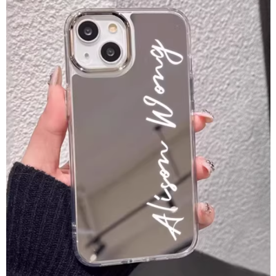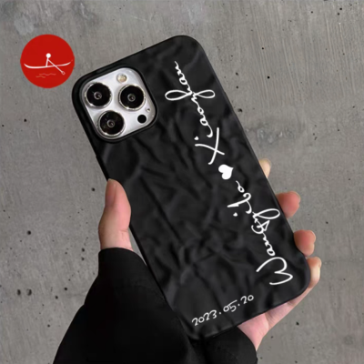 Custom Couple Case for iPhone 17 Pro Max/16/15/14/13 - Personalized Signature, Silver Matte Plated, Mirror & Soft Cover