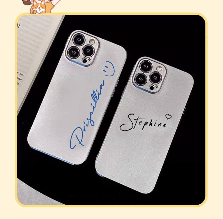 Custom Couple Case for iPhone 17 Pro Max/16/15/14/13 - Personalized Signature, Silver Matte Plated, Mirror & Soft Cover